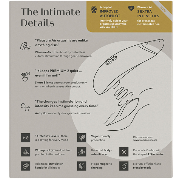 ボタンを押さなくてもお肌に触れるだけで吸引できるタッチセンサーを搭載!あのウーマナイザープレミアムがバージョンアップした「ウーマナイザー プレミアム2 (グレー)」。