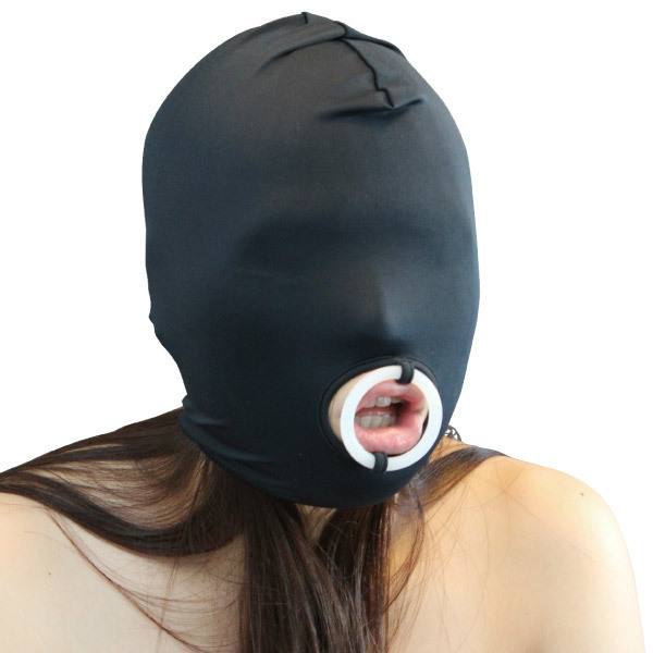 顔面全体を覆うイラマチオ専用のシリコンリング付きストレッチマスク(ブラック)。
