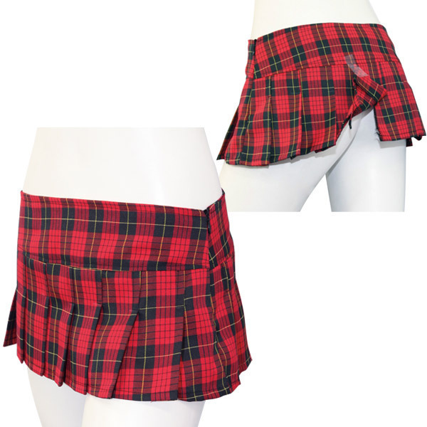 HOME > コスプレ衣装 > 小道具(ニーソックス・猫耳) > 露出のれん型チェックミニスカート レッド