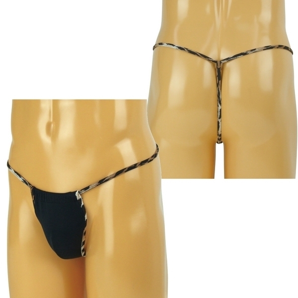 ストリングのレオパードデザインが絶妙なメンズTバックショーツ。
