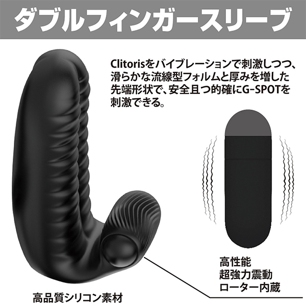 ◆男性補助グッズ ◆/ダブルフィンガースリーブ ◆パッケージ:14.7×6.4×4.8cm 本体:9.4×4.5cm・内蔵ローター4.5×1.6cm 電池:LR41×3個使用