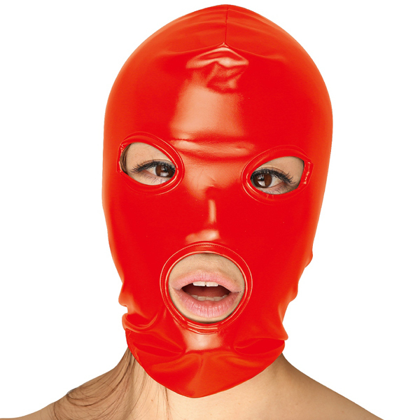 HOME > SMグッズ・拘束具 > アイマスク・目隠し > エナメル2wayストレッチ口アキ目アキ全頭拘束マスク レッド