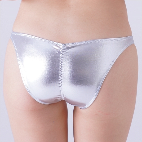 エナメル生地の光沢感がセクシーさを際立たせる、食い込みフルバックショーツ。