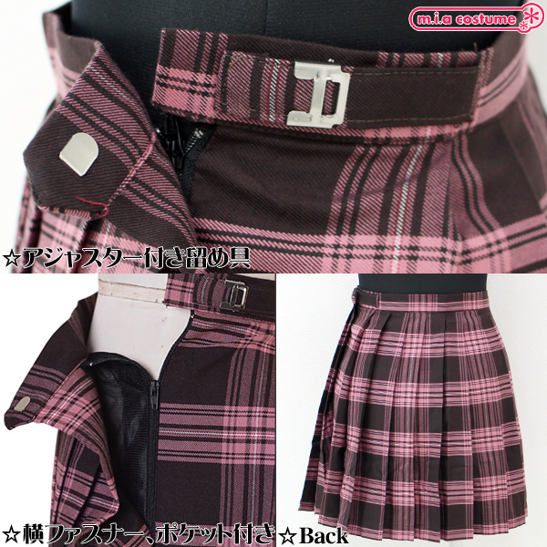 HOME > コスプレ衣装 > 小道具(ニーソックス・猫耳) > ポケット付きのチェック柄プリーツスカート単品 ピンク×ブラウン Lサイズ