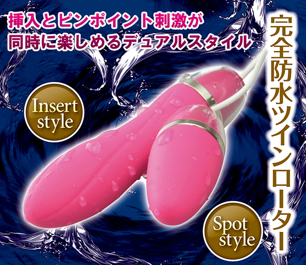 挿入して楽しめるインサートスタイルと、ピンポイントに当てて楽しめるスポットスタイルのヘッドは、それぞれ形が異なるのでクリに当てながら挿入したりといった使い方も可能♪振動パターンは10種類でトルクフルな強力振動はきっとクセになること間違いなし!肌触りの良いさらさらマット加工は、女性が心地よく感じること請け合いで、最新技術のウォーターシールド加工が施されているから、本体もコントローラーも水に入れても浸水しませんよ♪こちらはシックなブラックカラーになります。