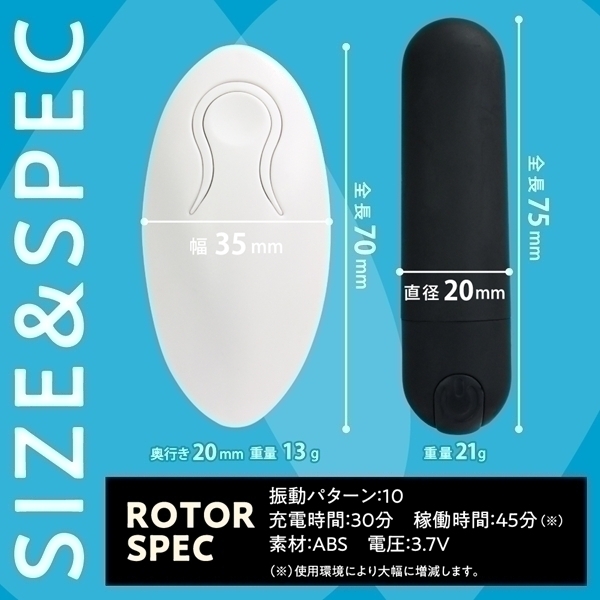 ◆ローター ◆ ◆パッケージ:ヘッダー14.5×8.8×3.0cm ローター 7.5×直径2.0cm リモコン 7.0×3.5×2.0cm USB充電式