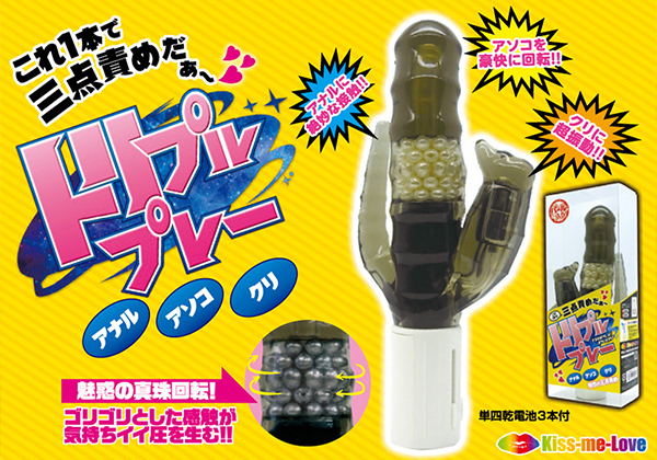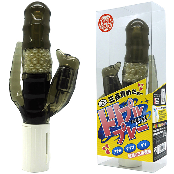 普段お使いのバイブではアソコとクリしか刺激できないでしょう?ですがこちらの「トリプルプレー」ならそんなお悩みもラクラク解消!「アナル」「アソコ」「クリ」がこれ1本で楽しめる魅惑の三点責めバイブ♪ボディは豪快なスイングと内蔵パールの回転でゴリゴリとした快感を生みだし、小バイブがクリに超振動を与えつつ小ぶりなしっぽがアナルを絶妙に刺激してくれます。