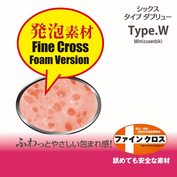 ●シックス・タイプ「W」ver●ふわっと優しく包み込む発泡素材を採用●内部:360℃配置した無数のミミズ千匹構造●細かな溝がローションをしっかりキャッチ●バキューム力も抜群●日本製・ローション付き。