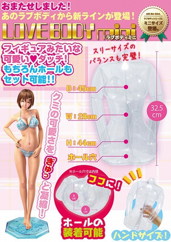 絶大な人気を誇るエアーダッチLOVEBODYシリーズから、コンパクトな「mini」が登場!全長32.5cmとサイズはコンパクトでも、ラブボディのクオリティはそのまま!美しいkumiのスリーサイズバランスを、ぎゅっと凝縮したパーフェクトボディです。