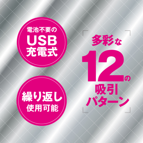 吸いすぎ注意!?パワフル吸引がクリを一点突破!多彩な12の吸引パターンを内蔵!乾電池不要のUSB充電式。