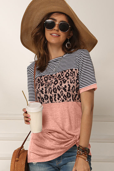 【870円★数量限定】パンサー柄 切り替えTシャツ Mサイズ ピンク<お一人様1点限り>