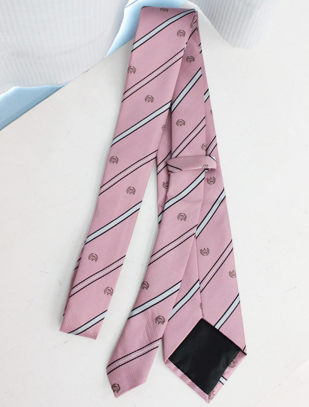 リボンに飽きちゃったらコレ!制服コスプレに欠かせないとっておきのアイテム、うっすらピンクの紋章入りスクールネクタイ単品。