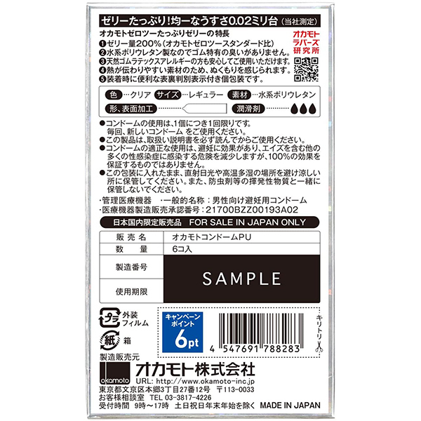 オカモトゼロツー うすさ均一0.02 (たっぷりゼリー)