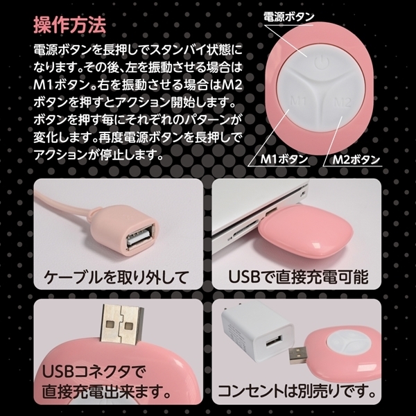 ◆ローター ◆ ◆パッケージ:14.4×10.0×4.2cm 本体:ローター5.4×3.2×1.9cm リモコン5.5×5.5×1.6cm 重量:77g USB充電式