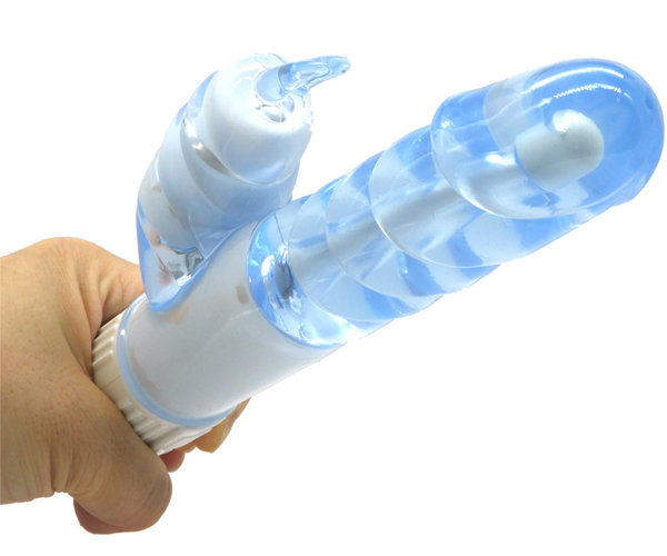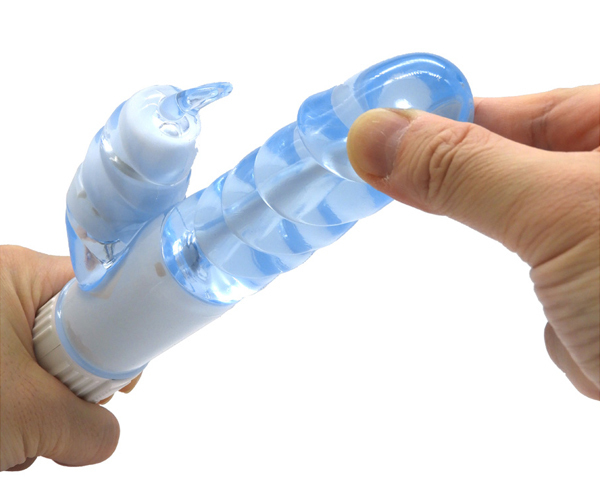 透き通るようなクリアブルーが美しい電池式バイブ。